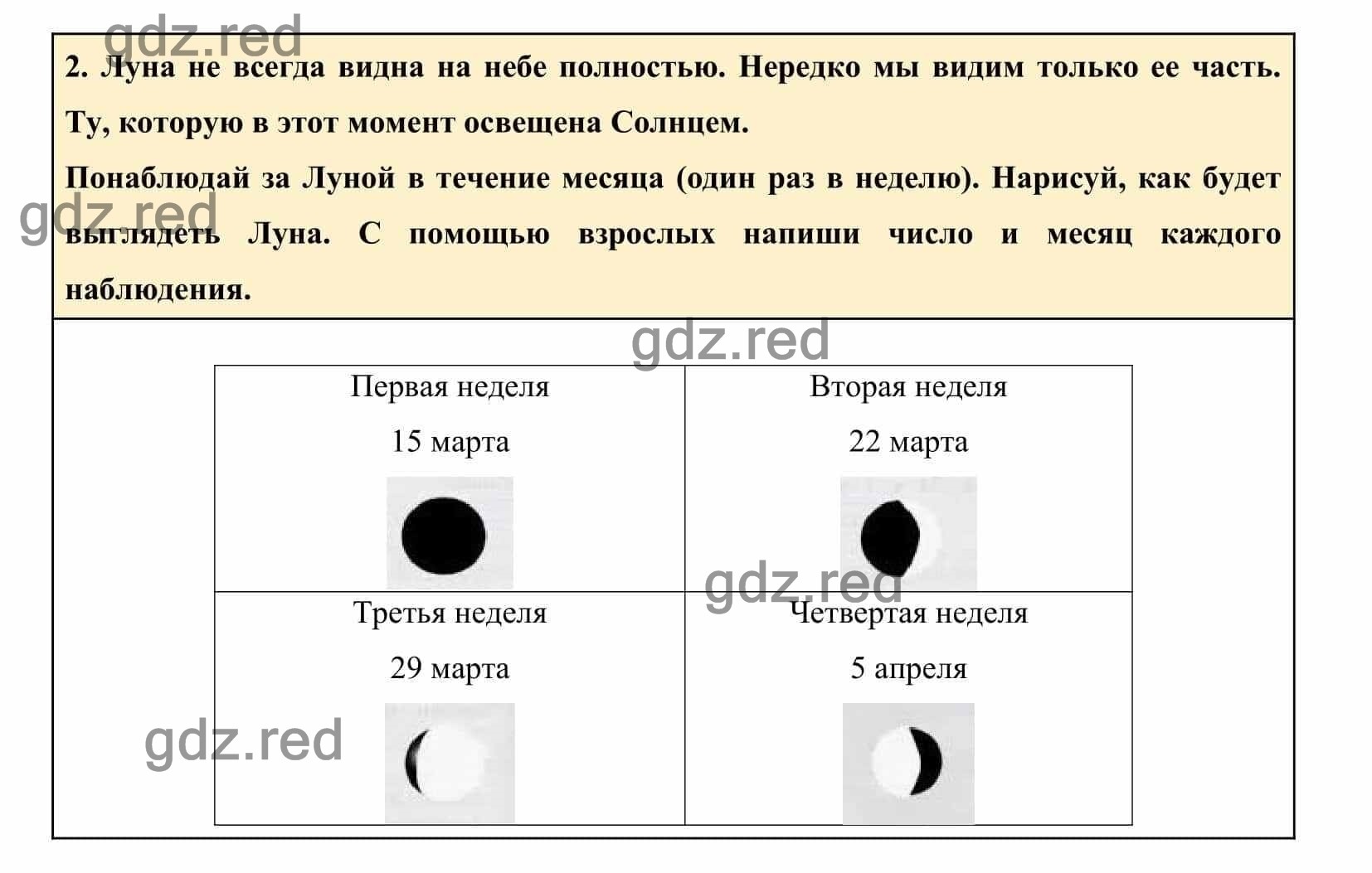 Понаблюдай за Луной в течение месяца (один раз в неделю). Нарисуй, как будет выглядеть Луна. С помощью взрослых напиши число и месяц каждого наблюдения.
