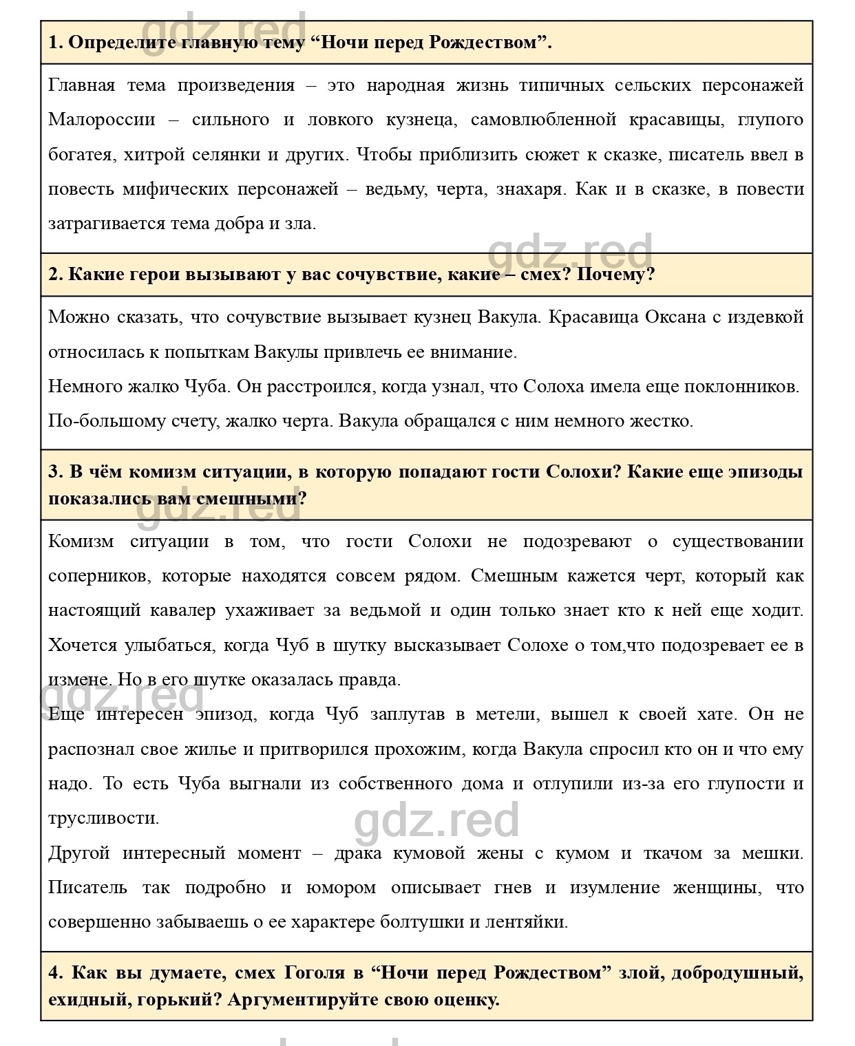 4. Как вы думаете, смех Гоголя в “Ночи перед Рождеством” злой, добродушный, ехидный, горький? Аргументируйте свою оценку.