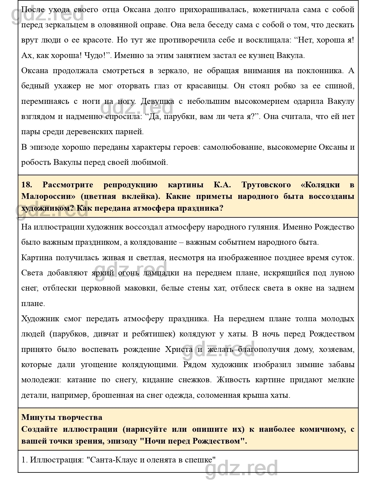 18. Рассмотрите репродукцию картины К.А. Трутовского «Колядки в Малороссии» (цветная вклейка). Какие приметы народного быта воссозданы художником? Как передана атмосфера праздника?
