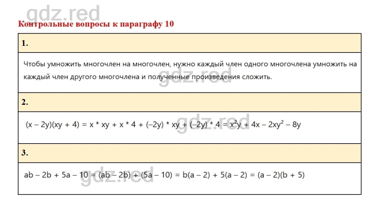 Контрольные вопросы к параграфу 10 из учебника по алгебре для 7 класса Макарычева