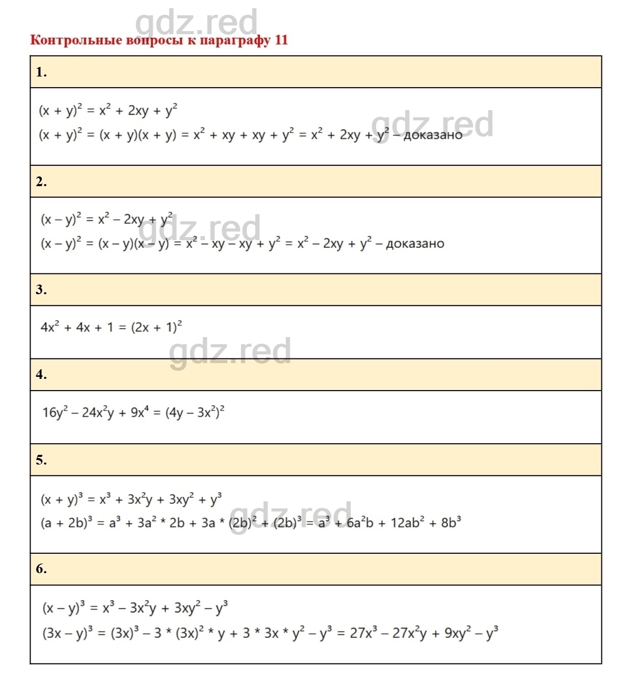 Контрольные вопросы к параграфу 11 из учебника по алгебре для 7 класса Макарычева