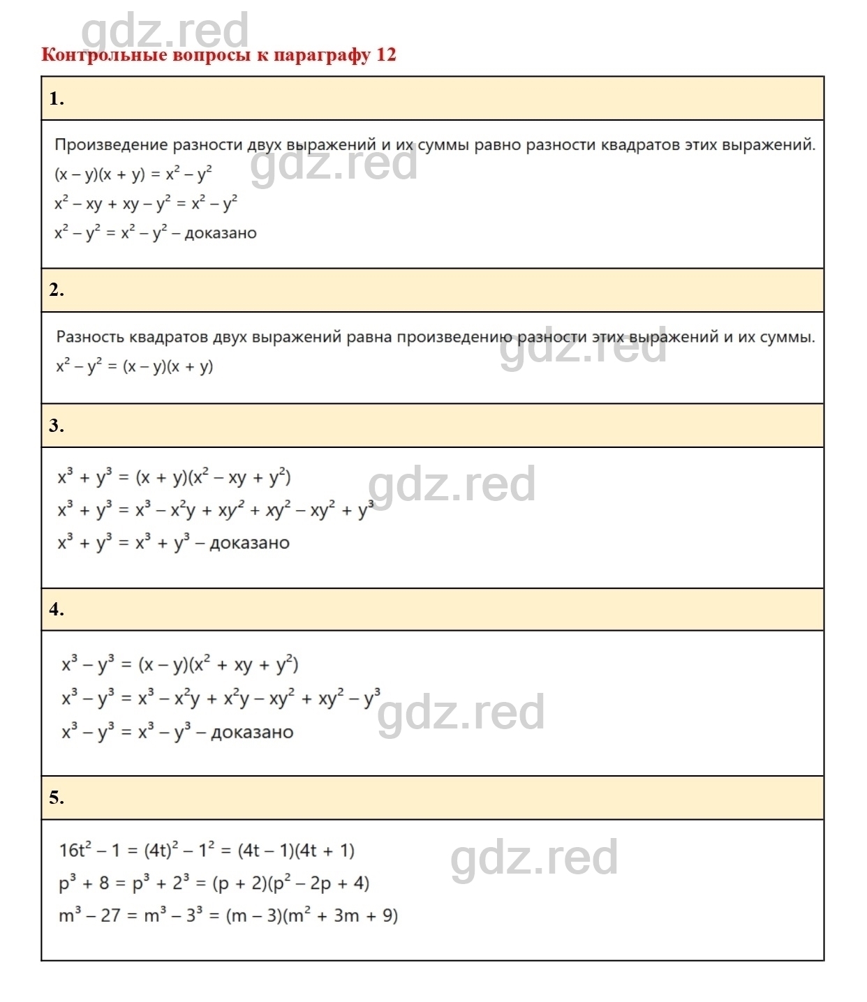 Контрольные вопросы к параграфу 12 из учебника по алгебре для 7 класса Макарычева