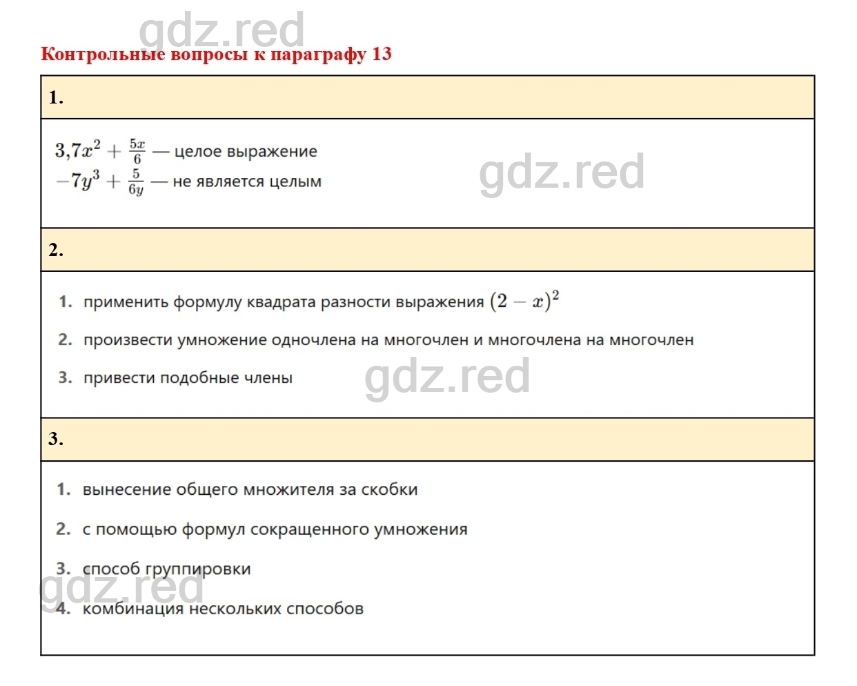 Контрольные вопросы к параграфу 13 из учебника по алгебре для 7 класса Макарычева