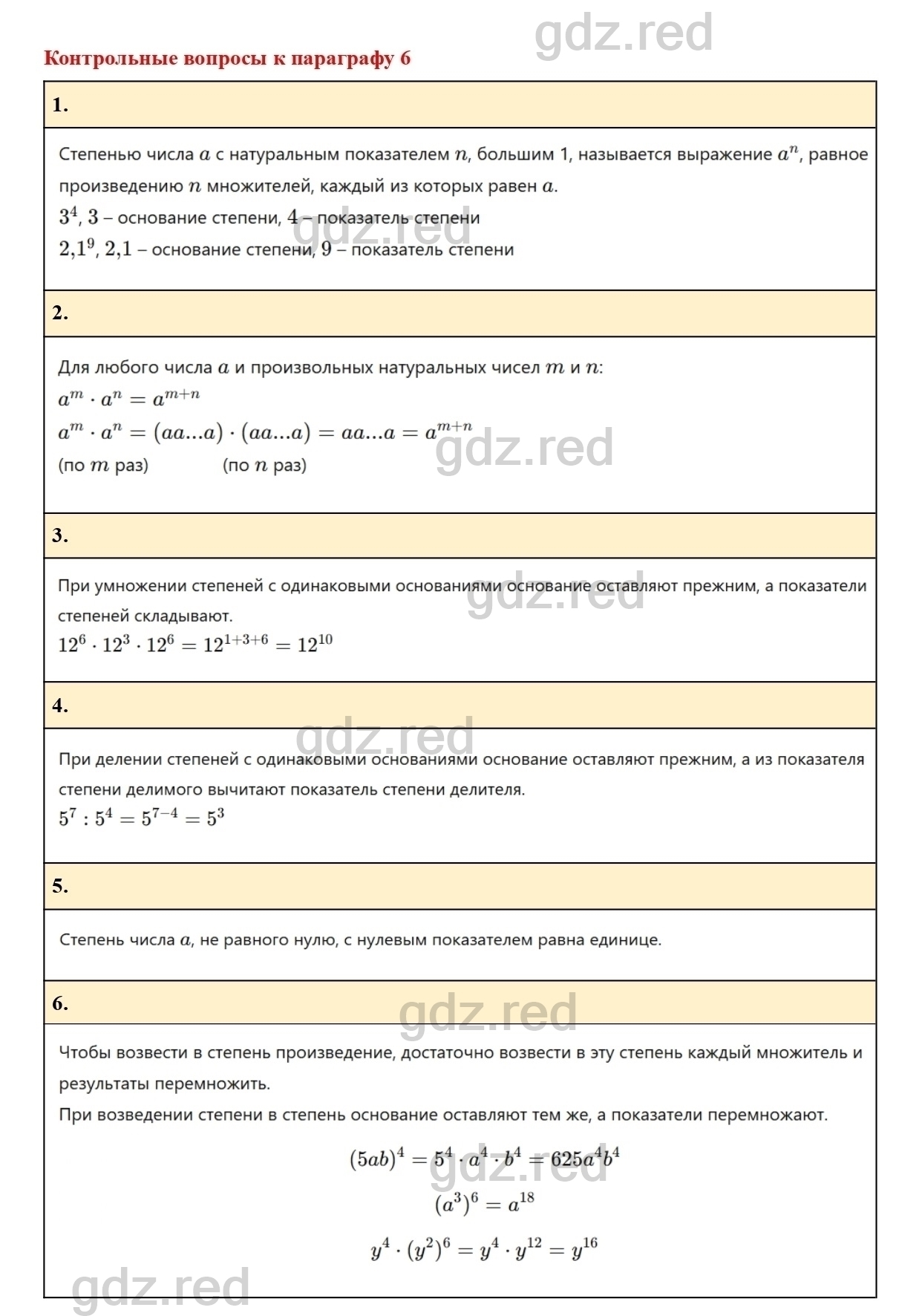 Контрольные вопросы к параграфу 6 из учебника по алгебре для 7 класса Макарычева