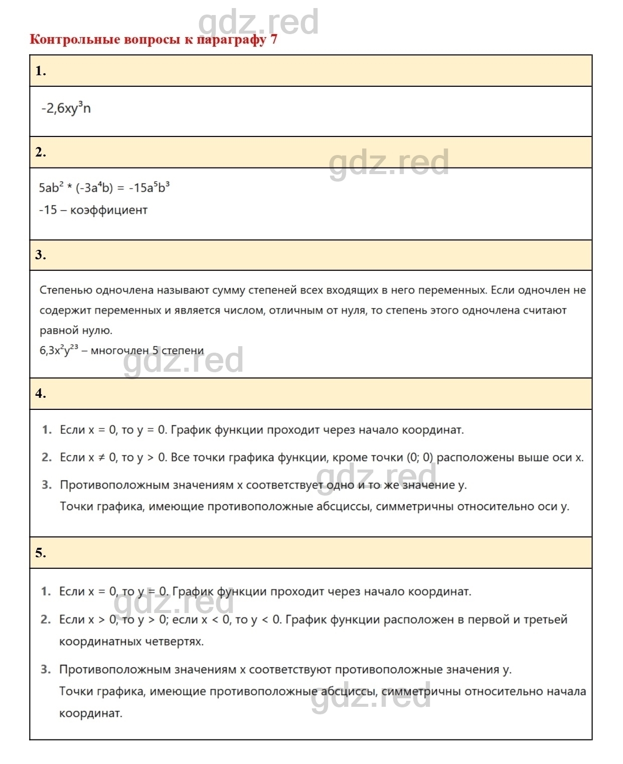 Контрольные вопросы к параграфу 7 из учебника по алгебре для 7 класса Макарычева