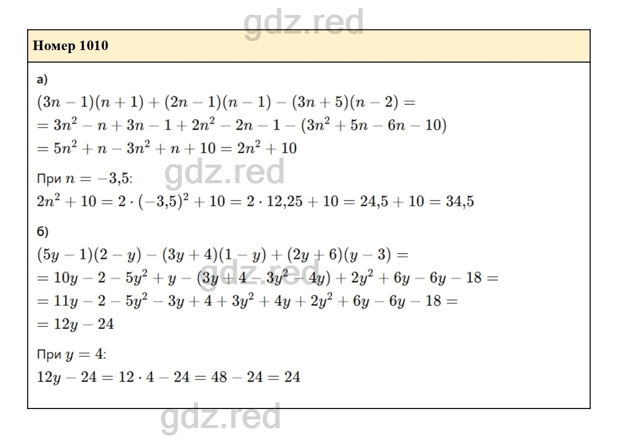 Решение упражнения 1010 из учебника по алгебре для 7 класса Макарычева