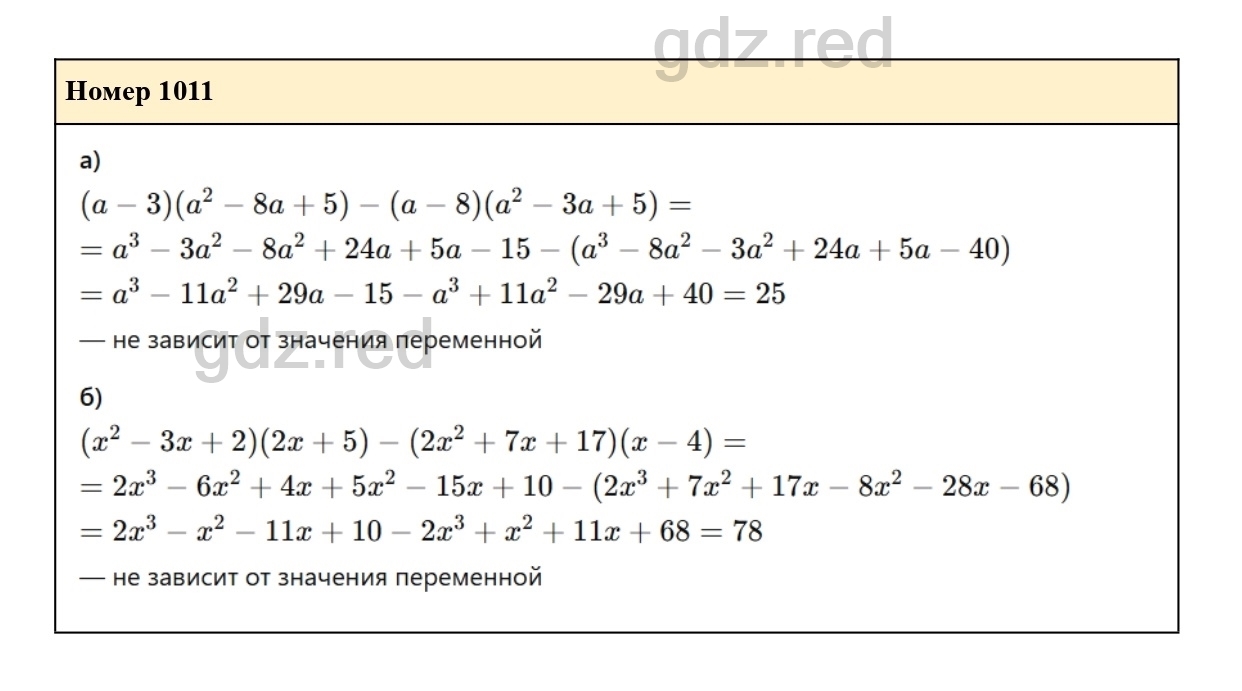 Решение упражнения 1011 из учебника по алгебре для 7 класса Макарычева