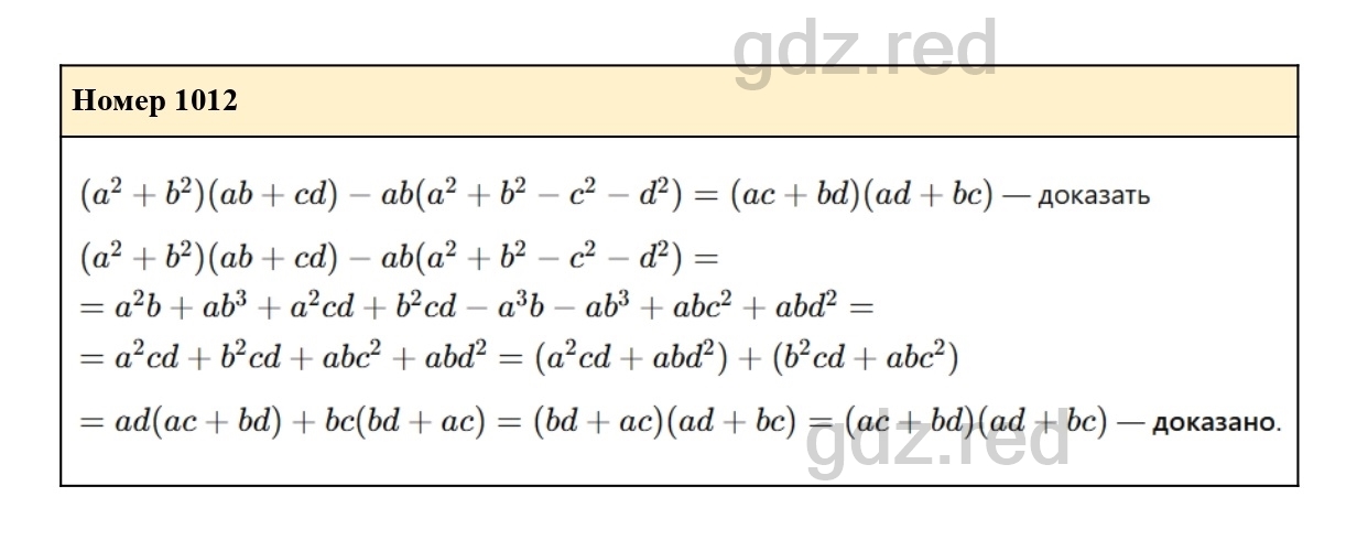 Решение упражнения 1012 из учебника по алгебре для 7 класса Макарычева