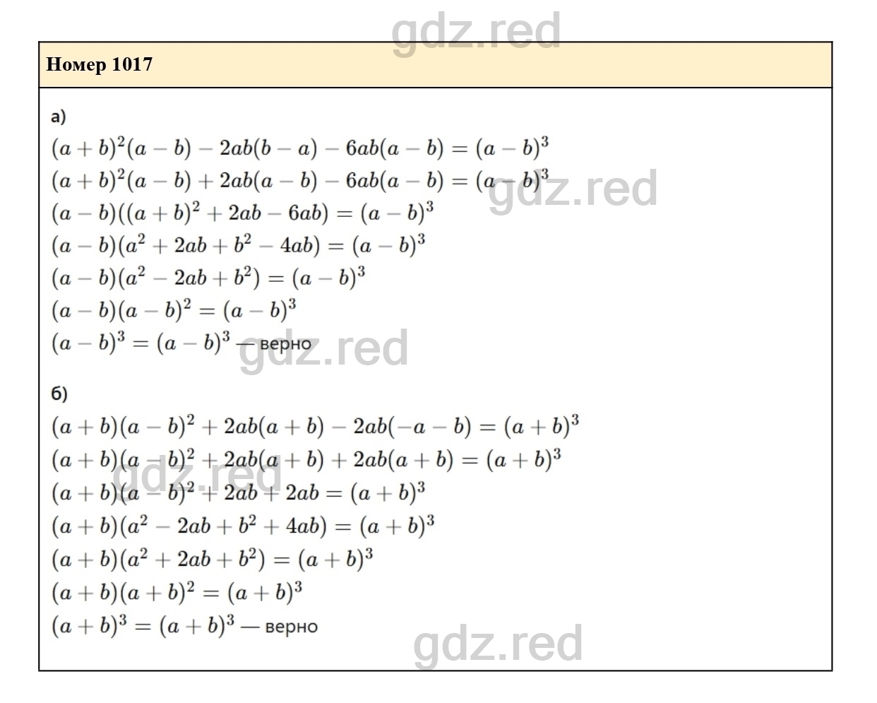 Решение упражнения 1017 из учебника по алгебре для 7 класса Макарычева
