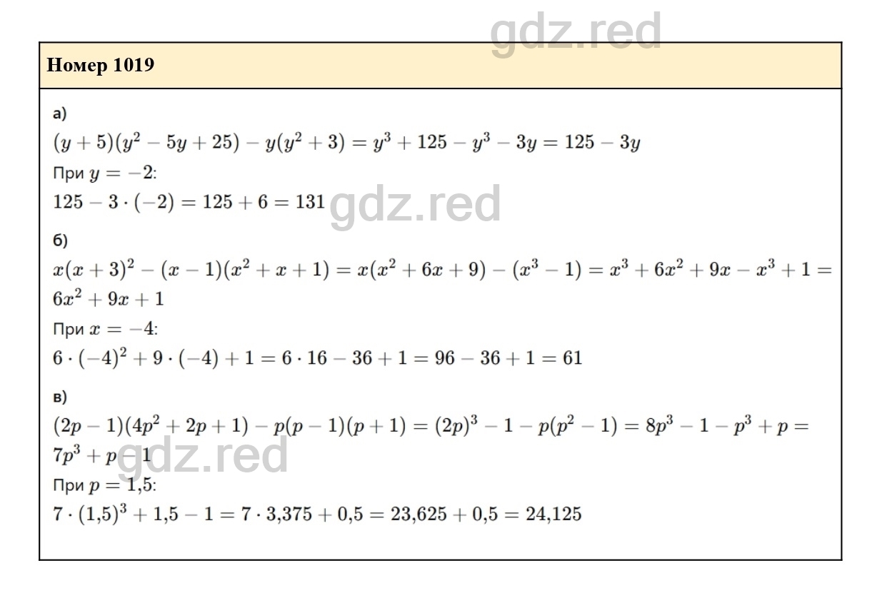 Решение упражнения 1019 из учебника по алгебре для 7 класса Макарычева