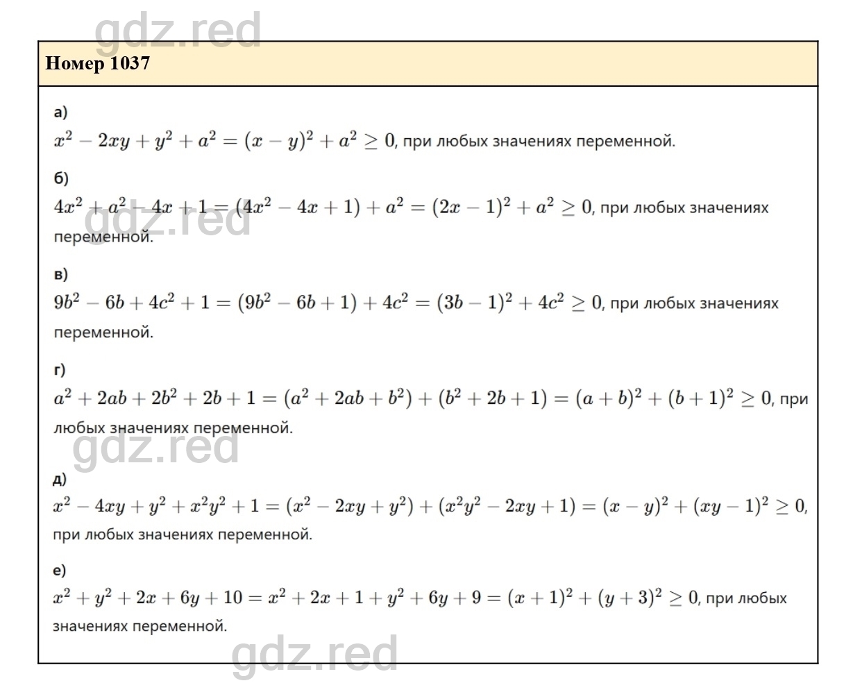 Решение упражнения 1037 из учебника по алгебре для 7 класса Макарычева