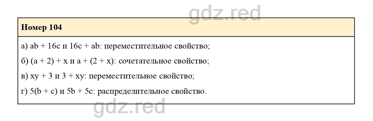 Решение упражнения 104 из учебника по алгебре для 7 класса Макарычева