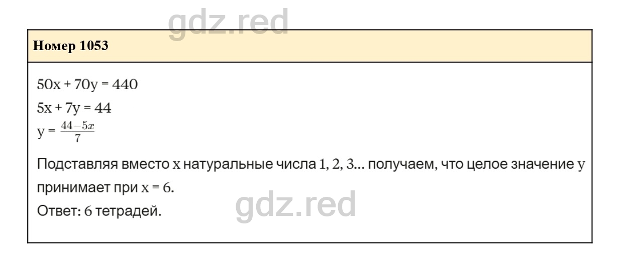 Решение упражнения 1053 из учебника по алгебре для 7 класса Макарычева
