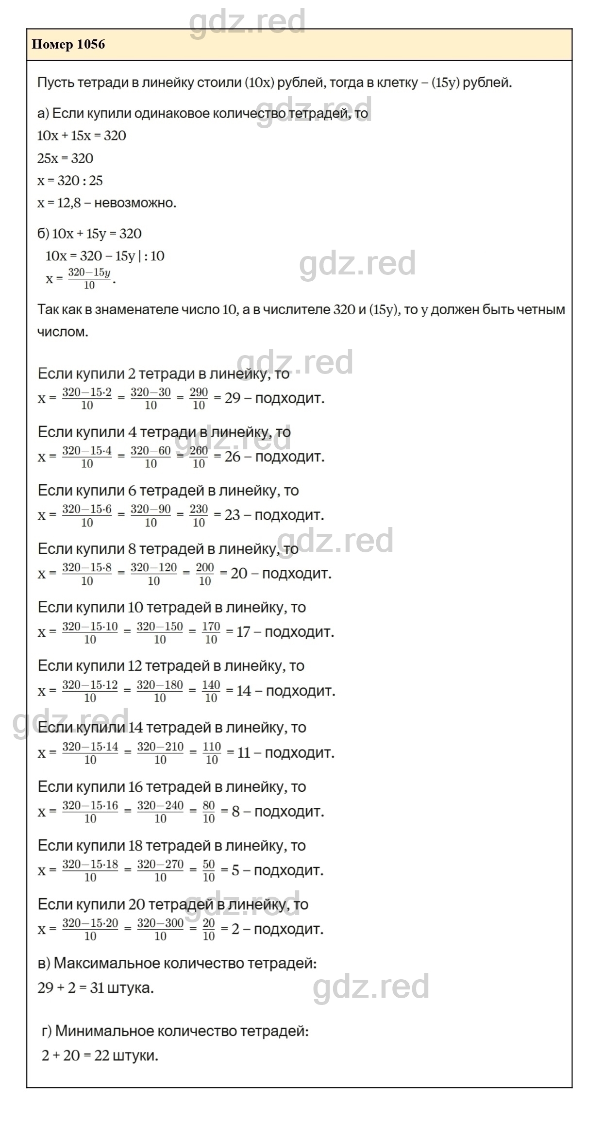 Решение упражнения 1056 из учебника по алгебре для 7 класса Макарычева