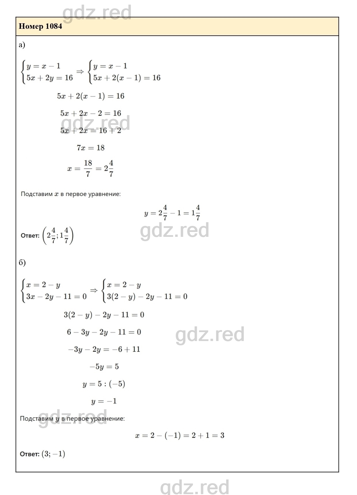 Решение упражнения 1084 из учебника по алгебре для 7 класса Макарычева