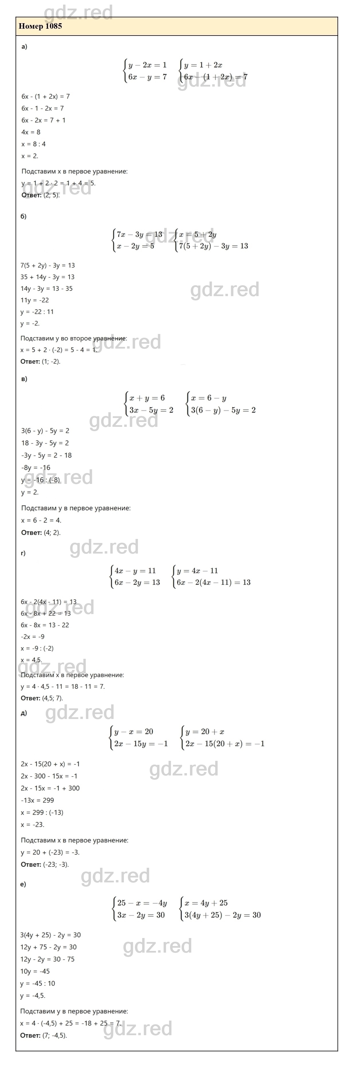 Решение упражнения 1085 из учебника по алгебре для 7 класса Макарычева