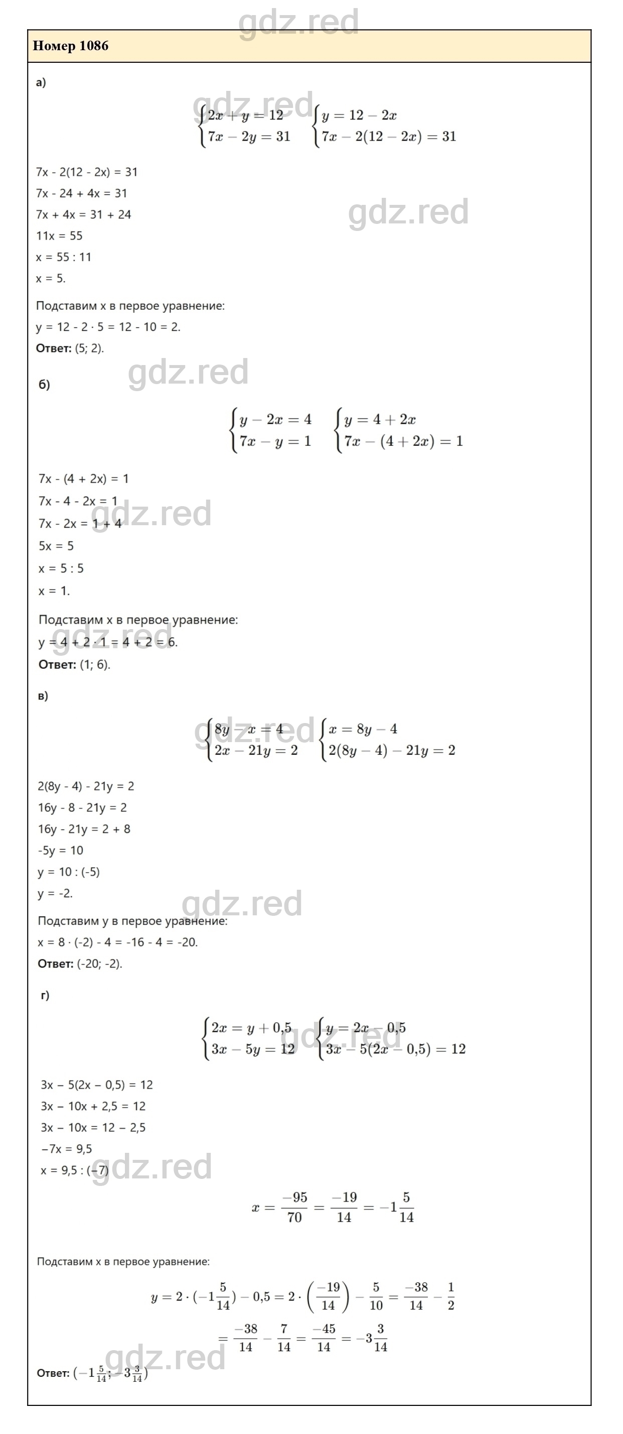 Решение упражнения 1086 из учебника по алгебре для 7 класса Макарычева