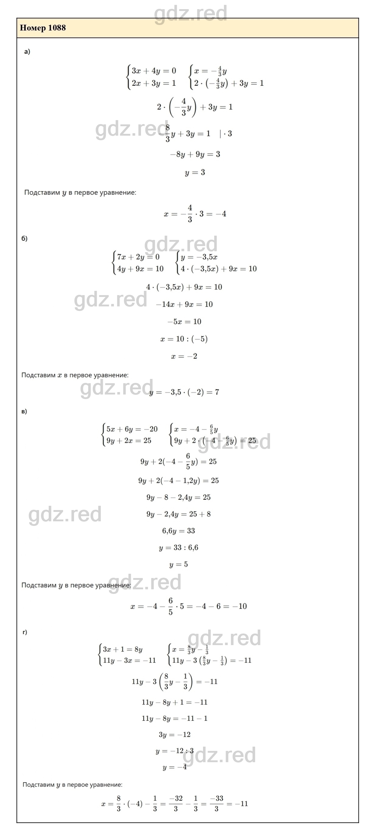 Решение упражнения 1088 из учебника по алгебре для 7 класса Макарычева