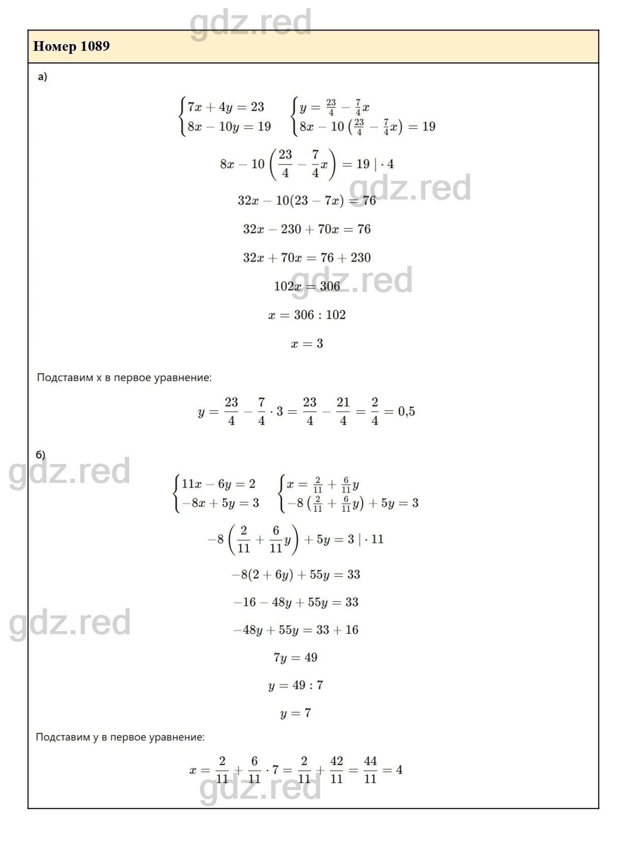 Решение упражнения 1089 из учебника по алгебре для 7 класса Макарычева