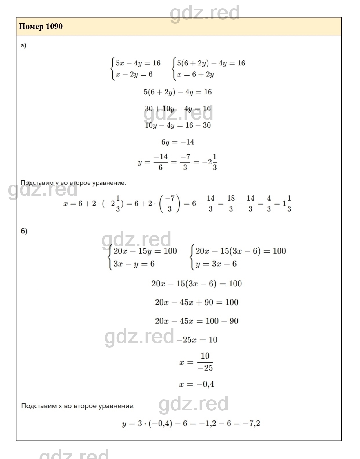 Решение упражнения 1090 из учебника по алгебре для 7 класса Макарычева