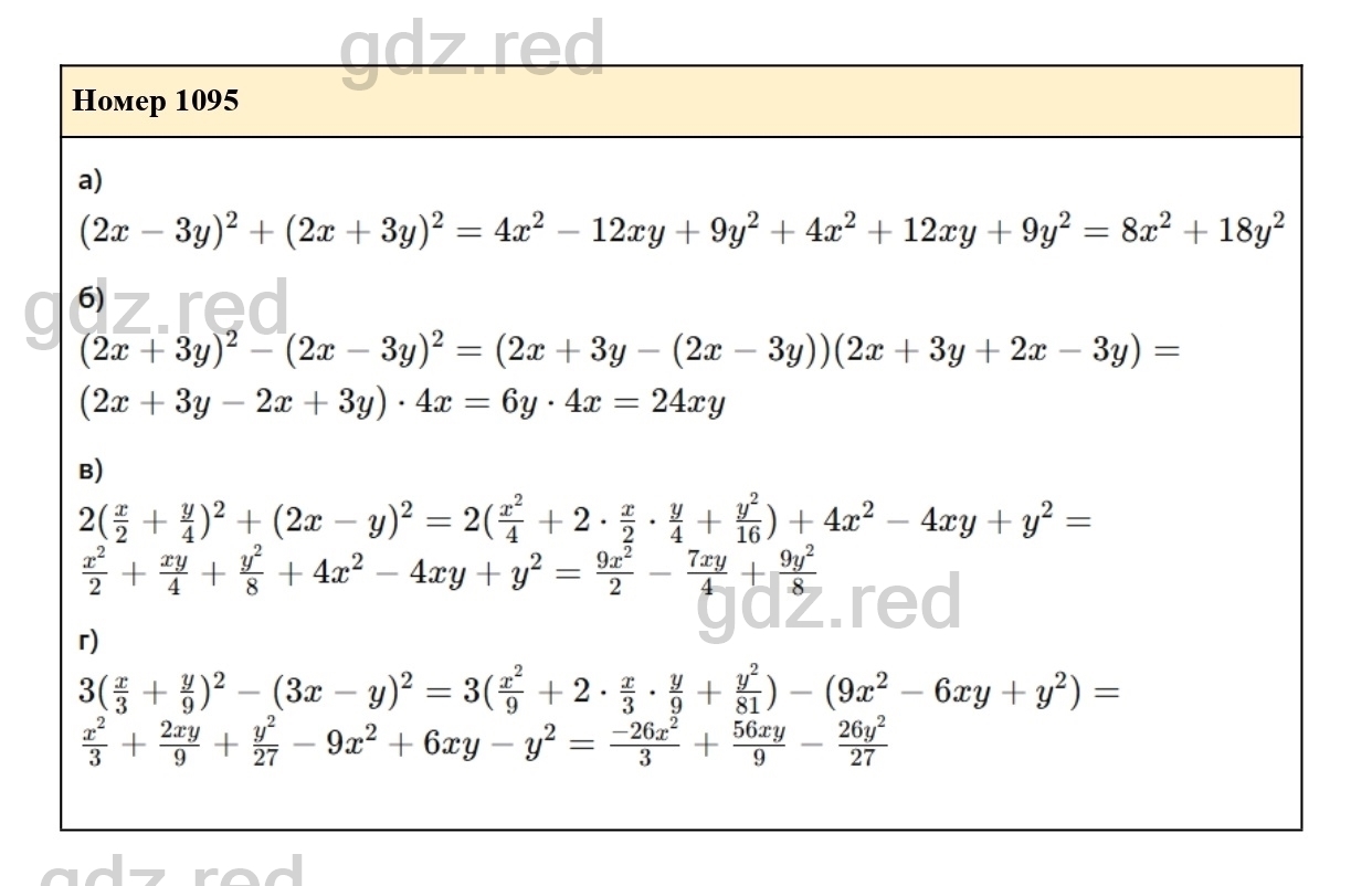 Решение упражнения 1095 из учебника по алгебре для 7 класса Макарычева
