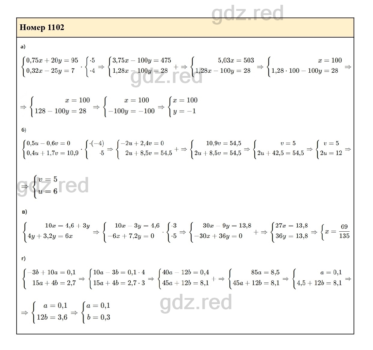 Решение упражнения 1102 из учебника по алгебре для 7 класса Макарычева