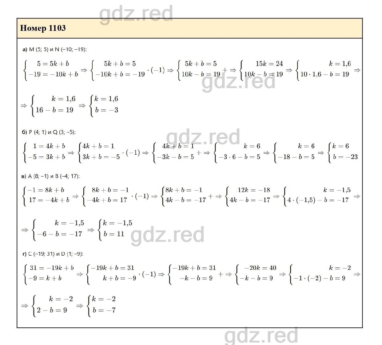 Решение упражнения 1103 из учебника по алгебре для 7 класса Макарычева