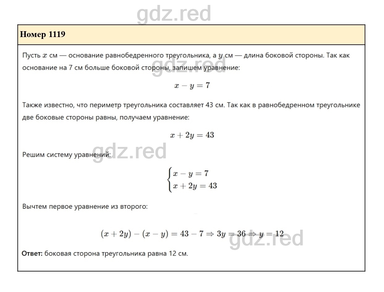 Решение упражнения 1119 из учебника по алгебре для 7 класса Макарычева