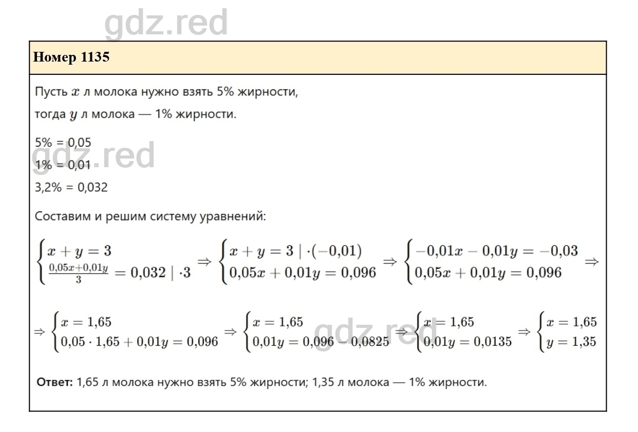 Решение упражнения 1135 из учебника по алгебре для 7 класса Макарычева