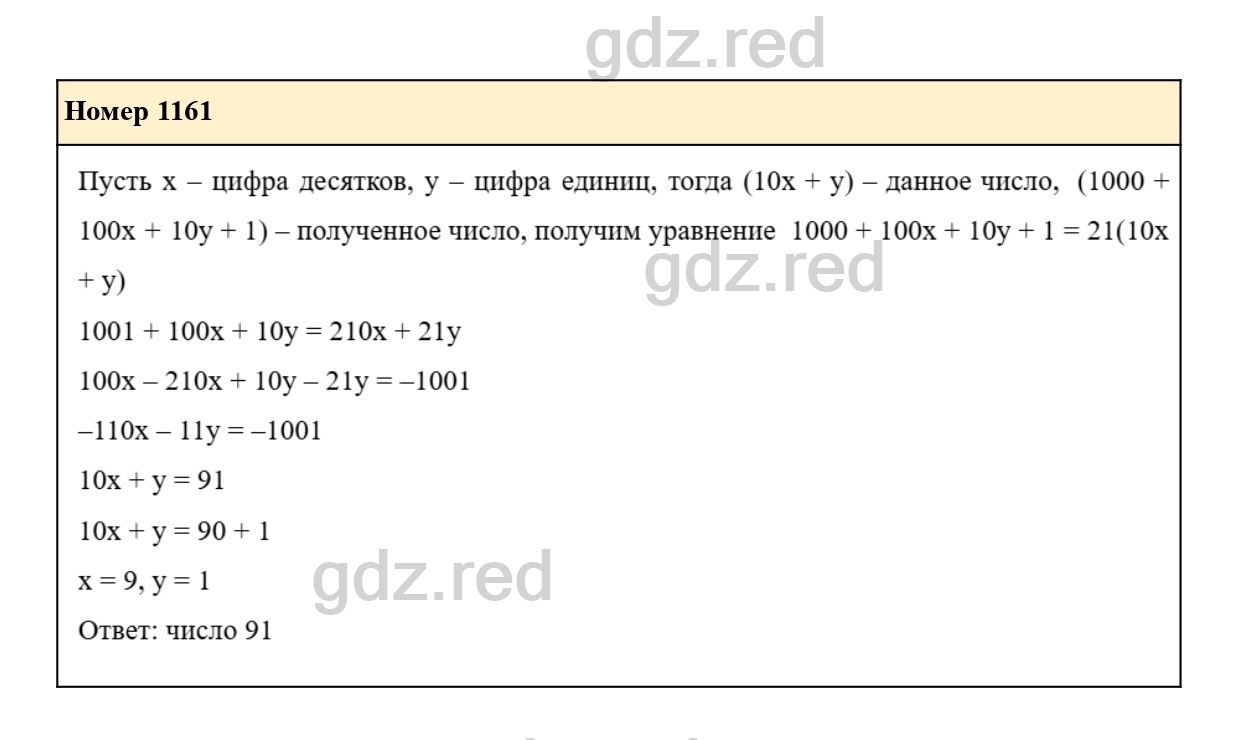 Решение упражнения 1161 из учебника по алгебре для 7 класса Макарычева
