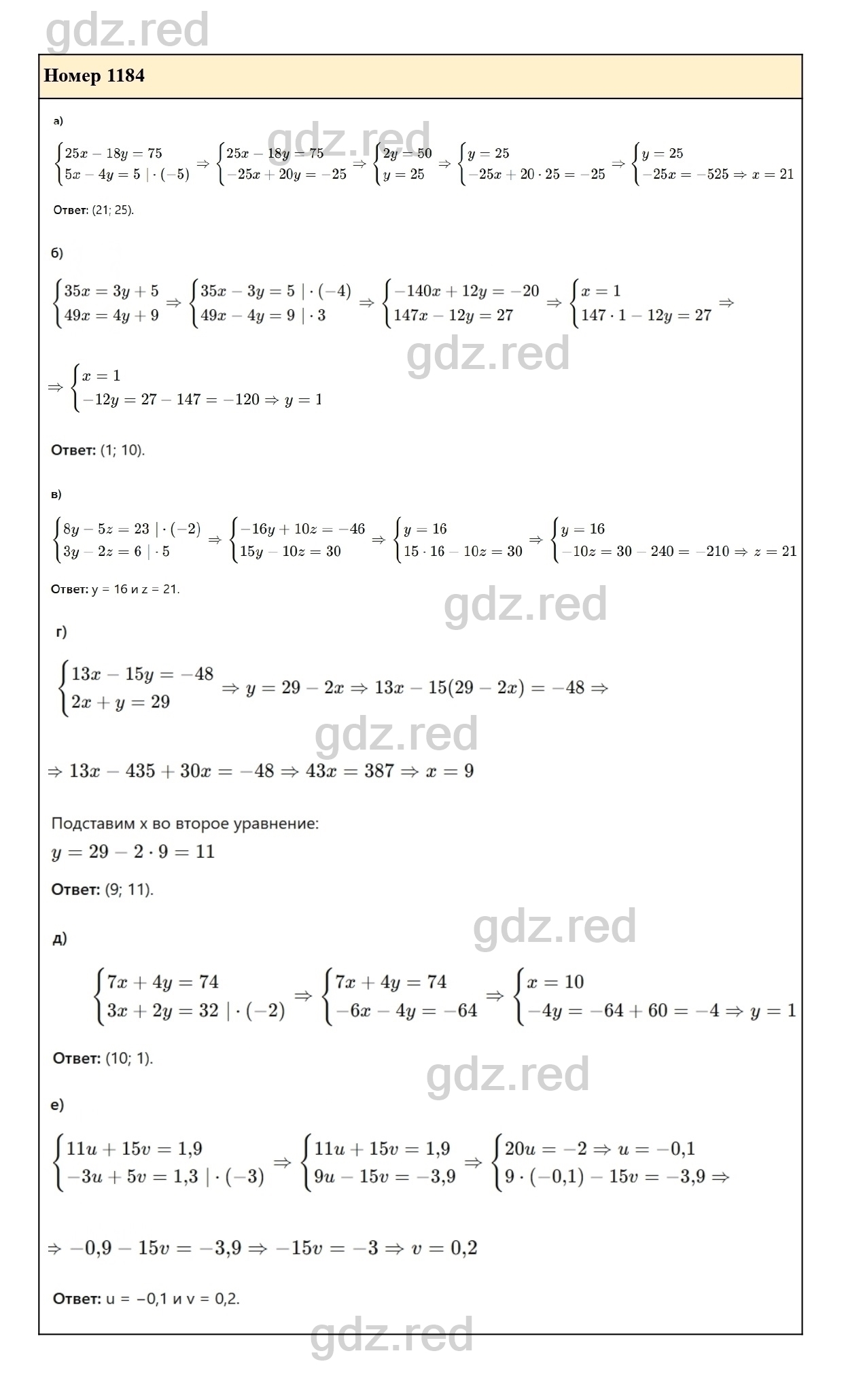 Решение упражнения 1184 из учебника по алгебре для 7 класса Макарычева