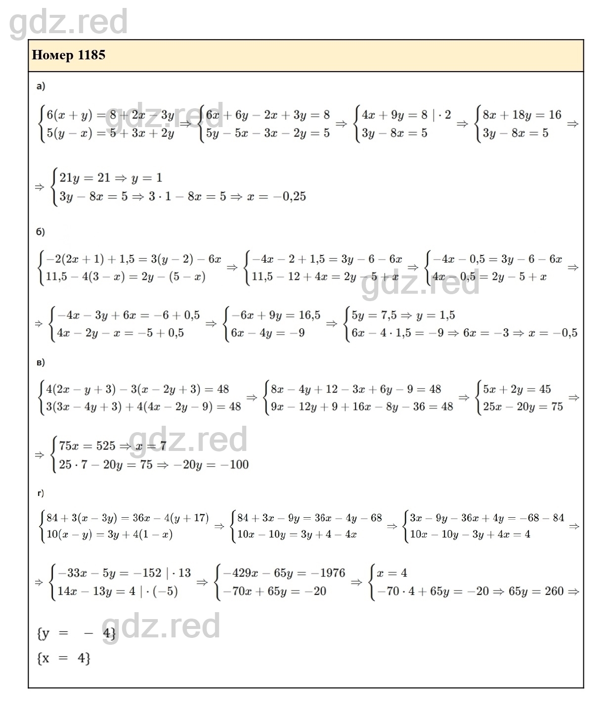 Решение упражнения 1185 из учебника по алгебре для 7 класса Макарычева