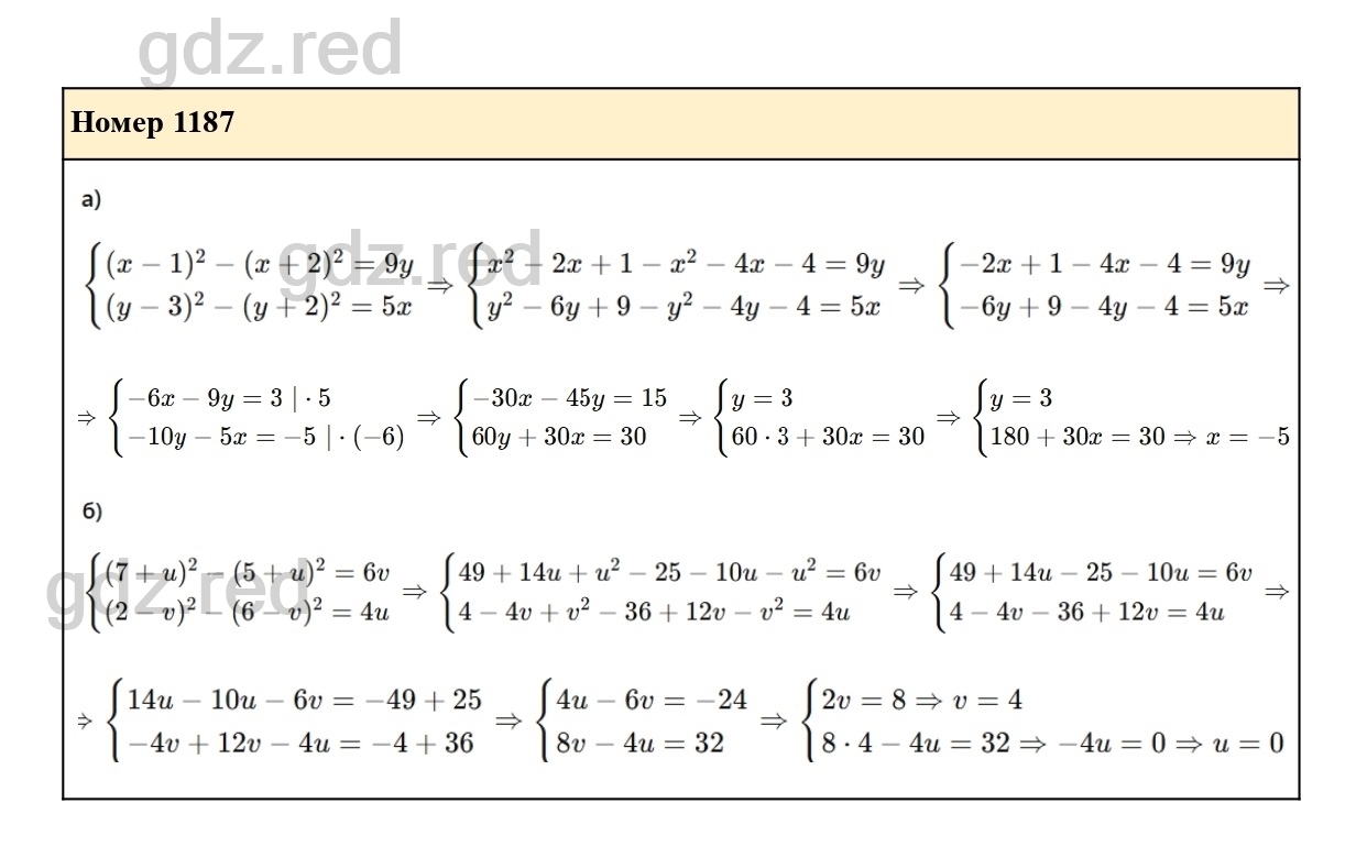 Решение упражнения 1187 из учебника по алгебре для 7 класса Макарычева