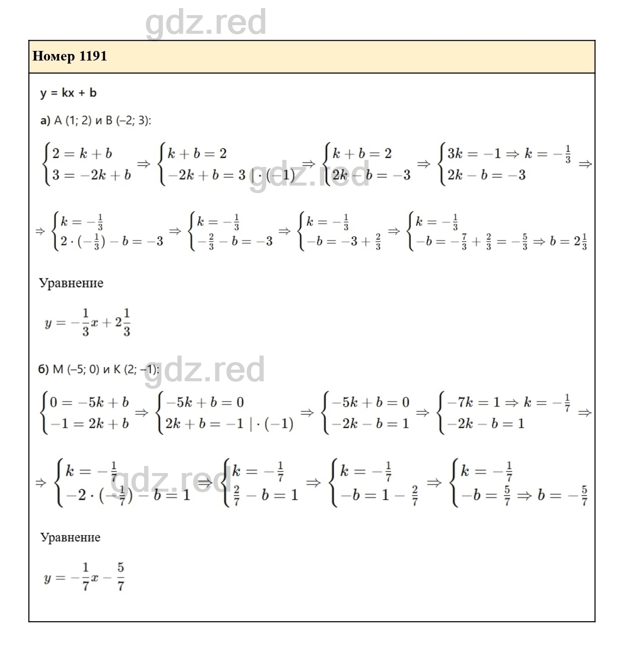 Решение упражнения 1191 из учебника по алгебре для 7 класса Макарычева