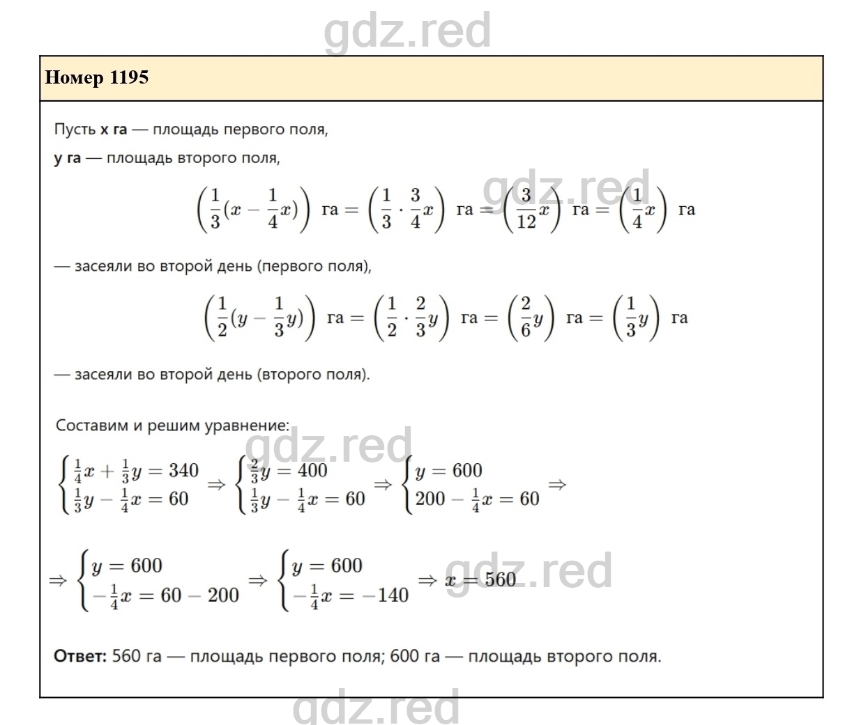 Решение упражнения 1195 из учебника по алгебре для 7 класса Макарычева