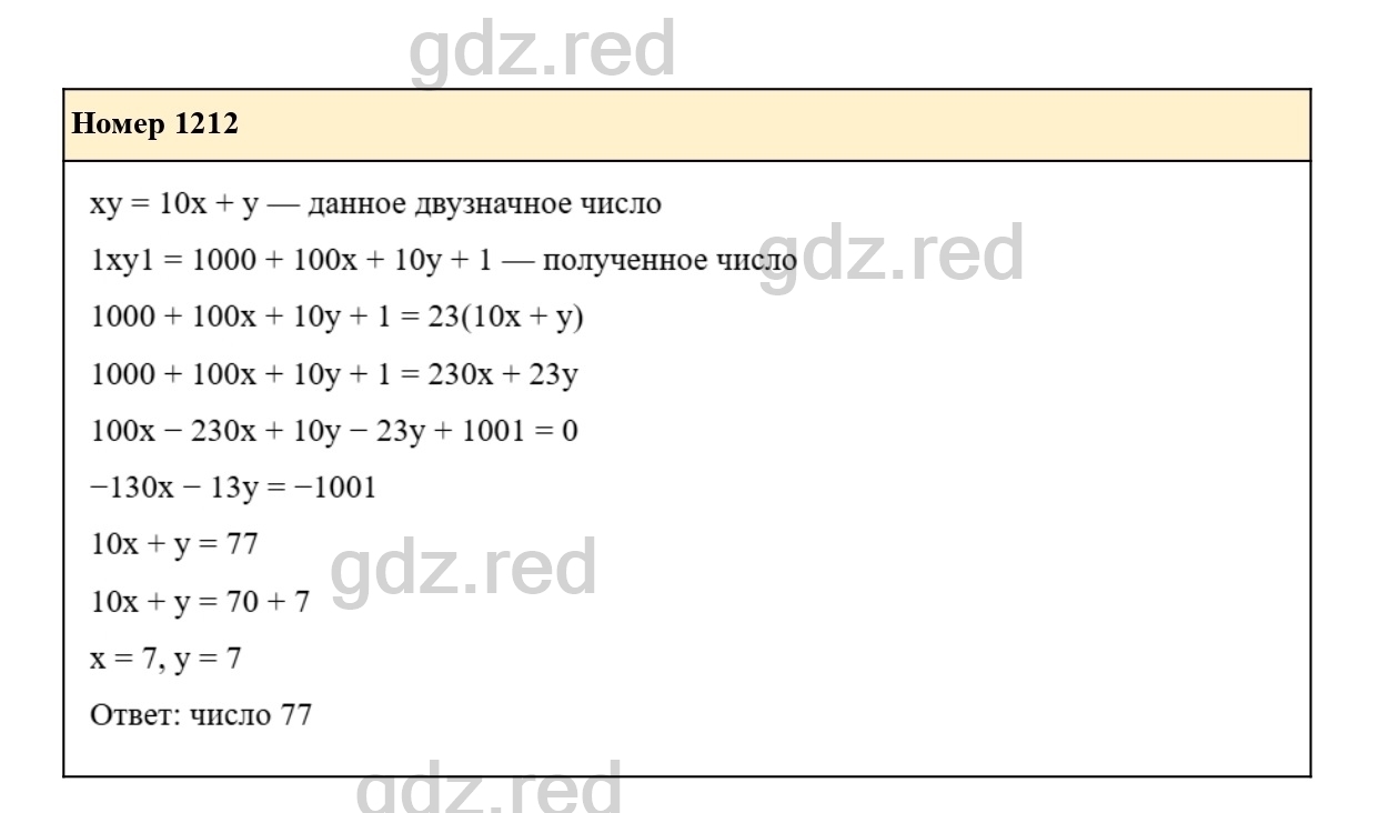 Решение упражнения 1212 из учебника по алгебре для 7 класса Макарычева