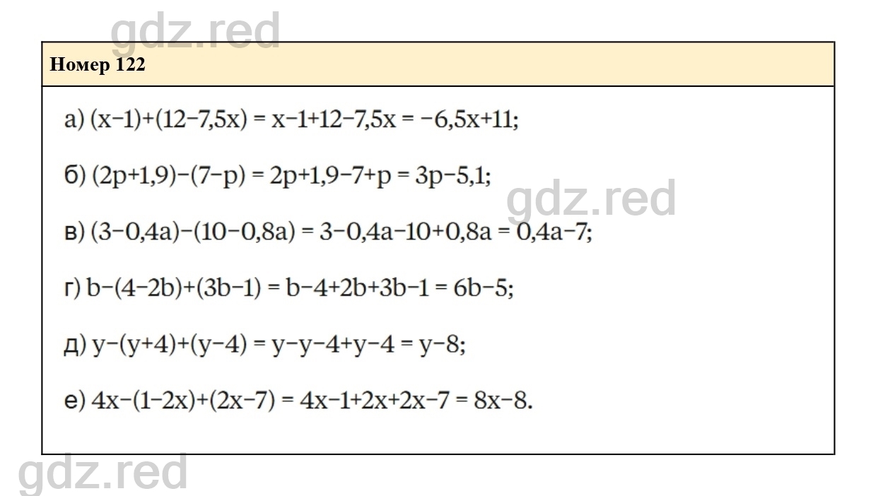 Решение упражнения 122 из учебника по алгебре для 7 класса Макарычева