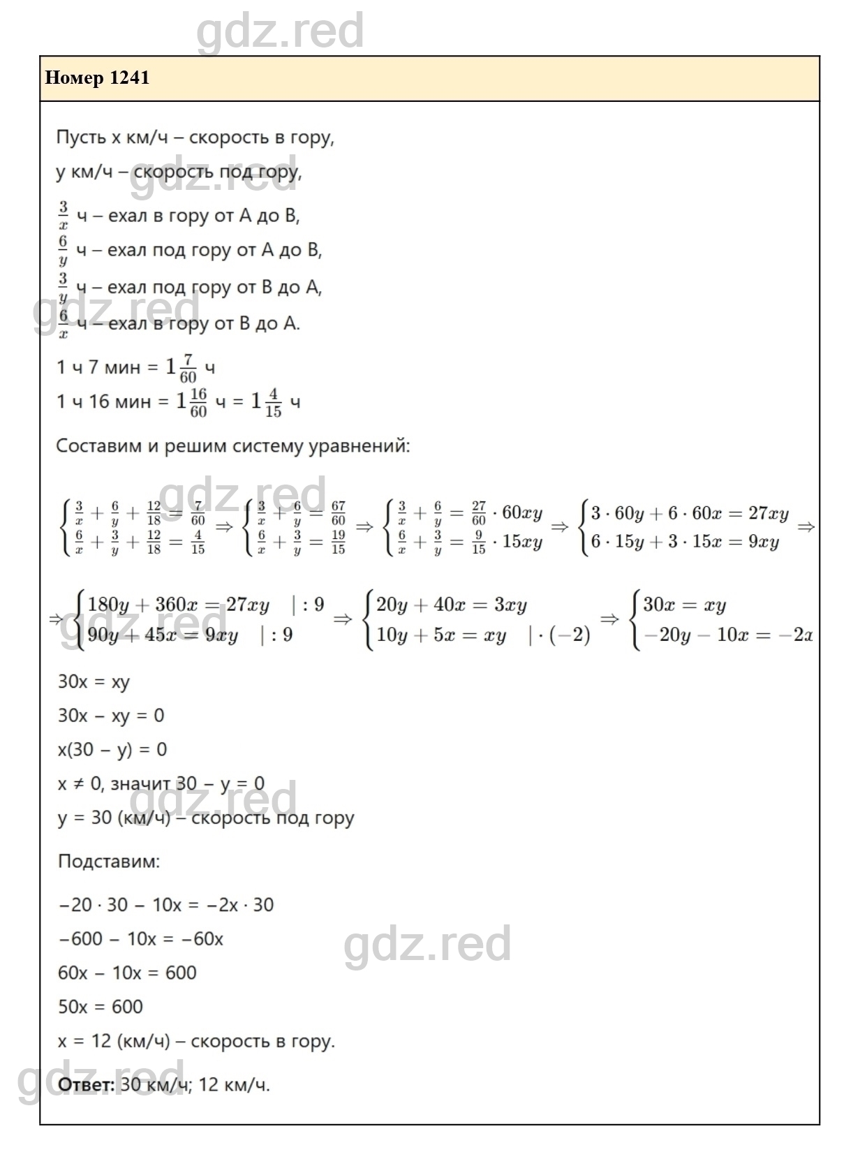 На этой странице рассмотрим все ответы на Номер 1241 из учебника по алгебре 7 класс Макарычев