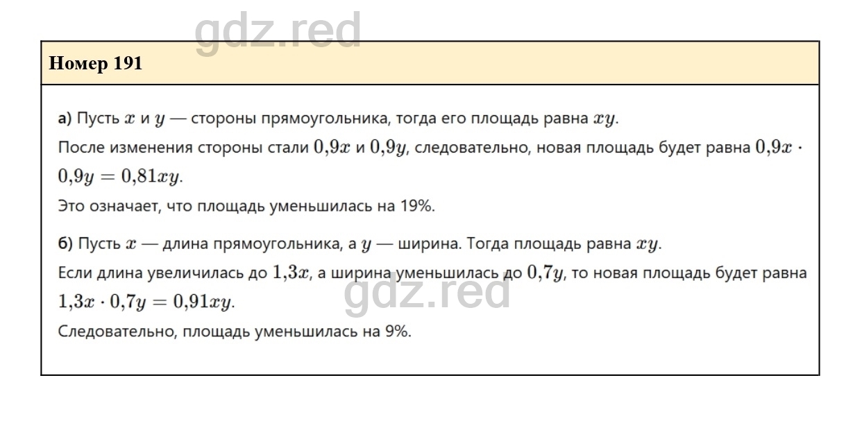 Решение упражнения 191 из учебника по алгебре для 7 класса Макарычева