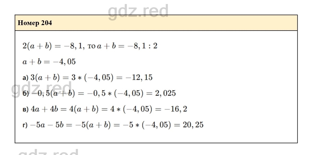Решение упражнения 204 из учебника по алгебре для 7 класса Макарычева