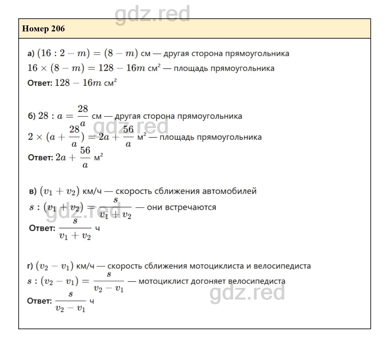 Решение упражнения 206 из учебника по алгебре для 7 класса Макарычева