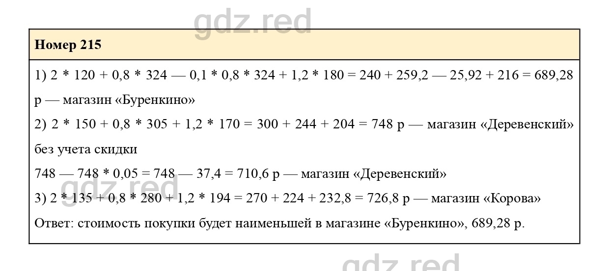 Решение упражнения 215 из учебника по алгебре для 7 класса Макарычева