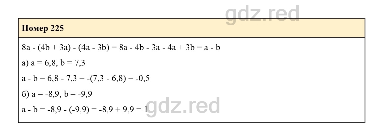 Решение упражнения 225 из учебника по алгебре для 7 класса Макарычева