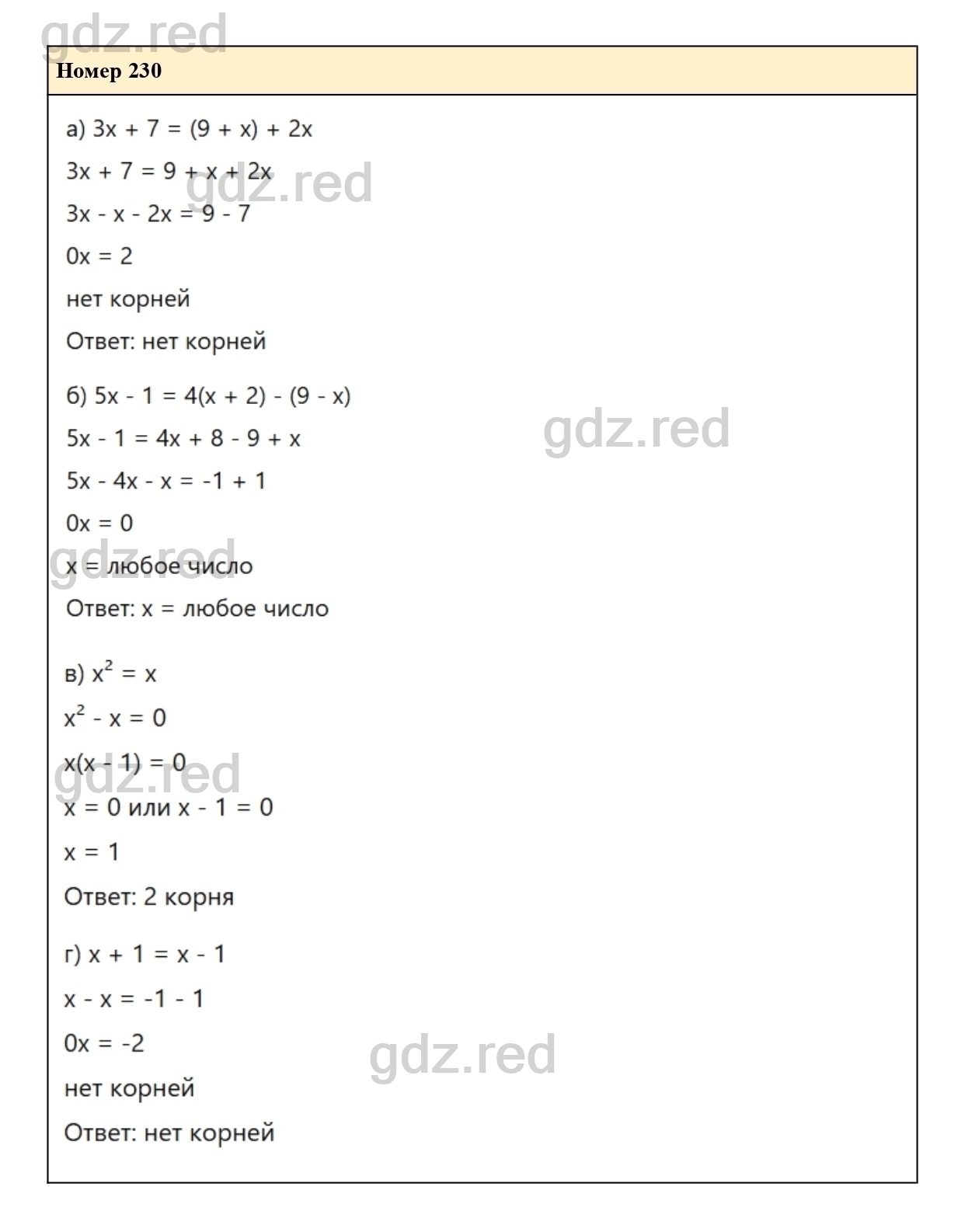 Решение упражнения 230 из учебника по алгебре для 7 класса Макарычева