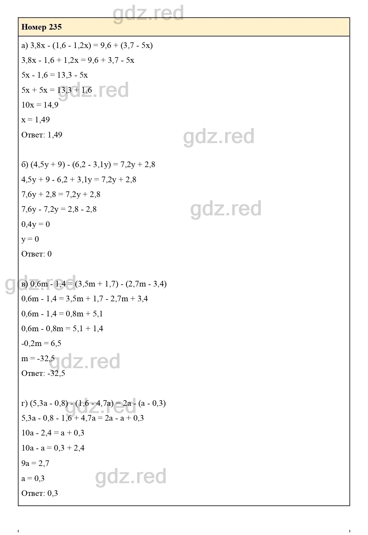 Решение упражнения 235 из учебника по алгебре для 7 класса Макарычева