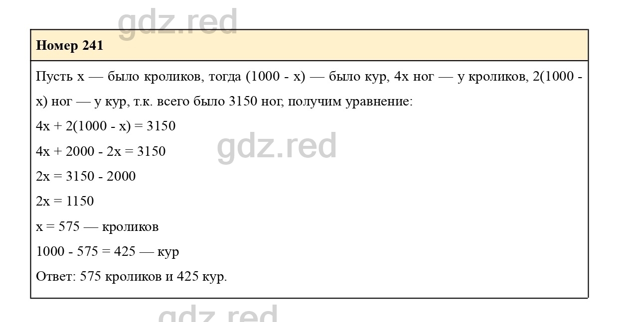 Решение упражнения 241 из учебника по алгебре для 7 класса Макарычева