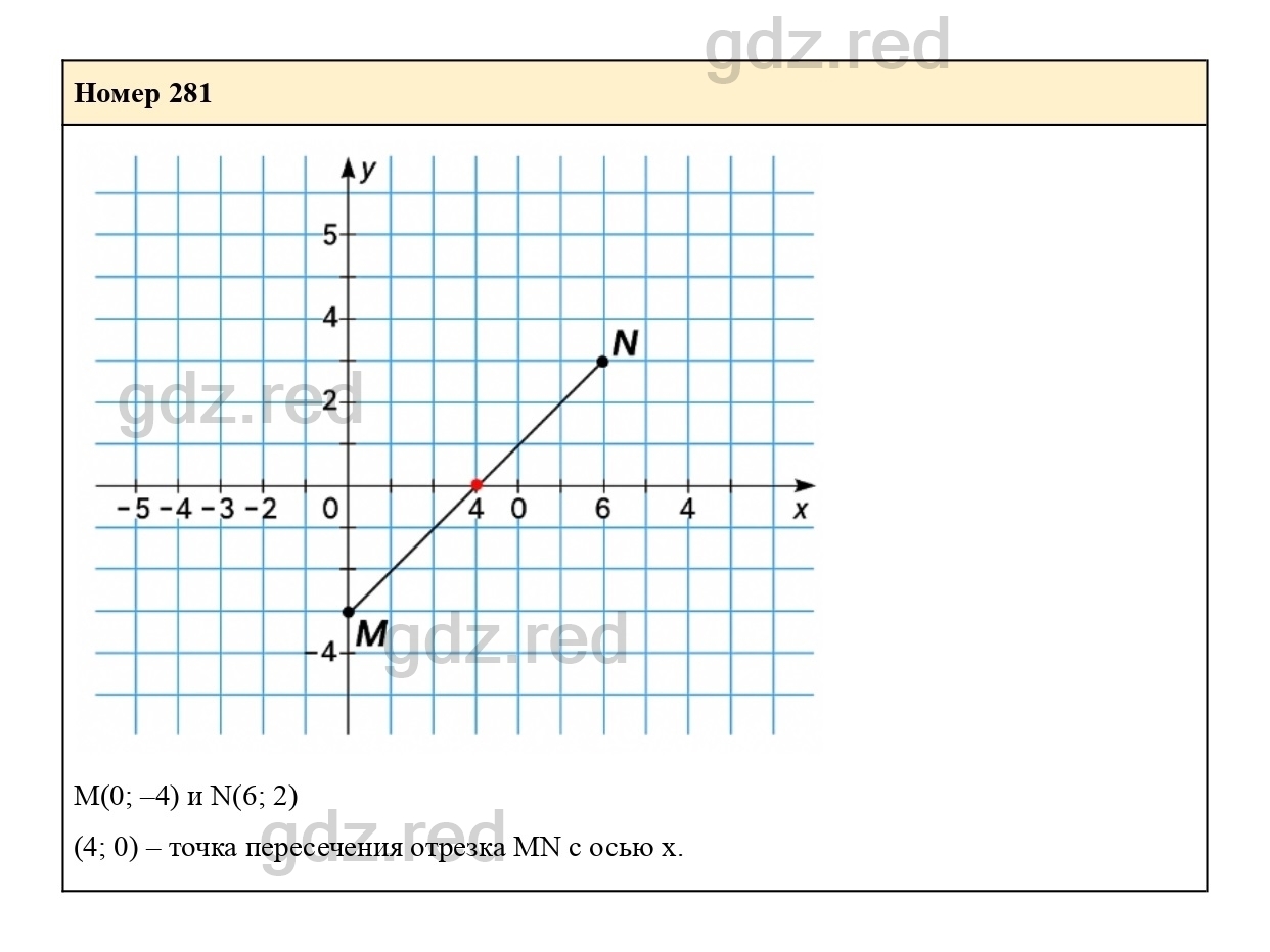 281. Отметьте в координатной плоскости точки M(0;-4) и N(6;2) и соедините их отрезком.