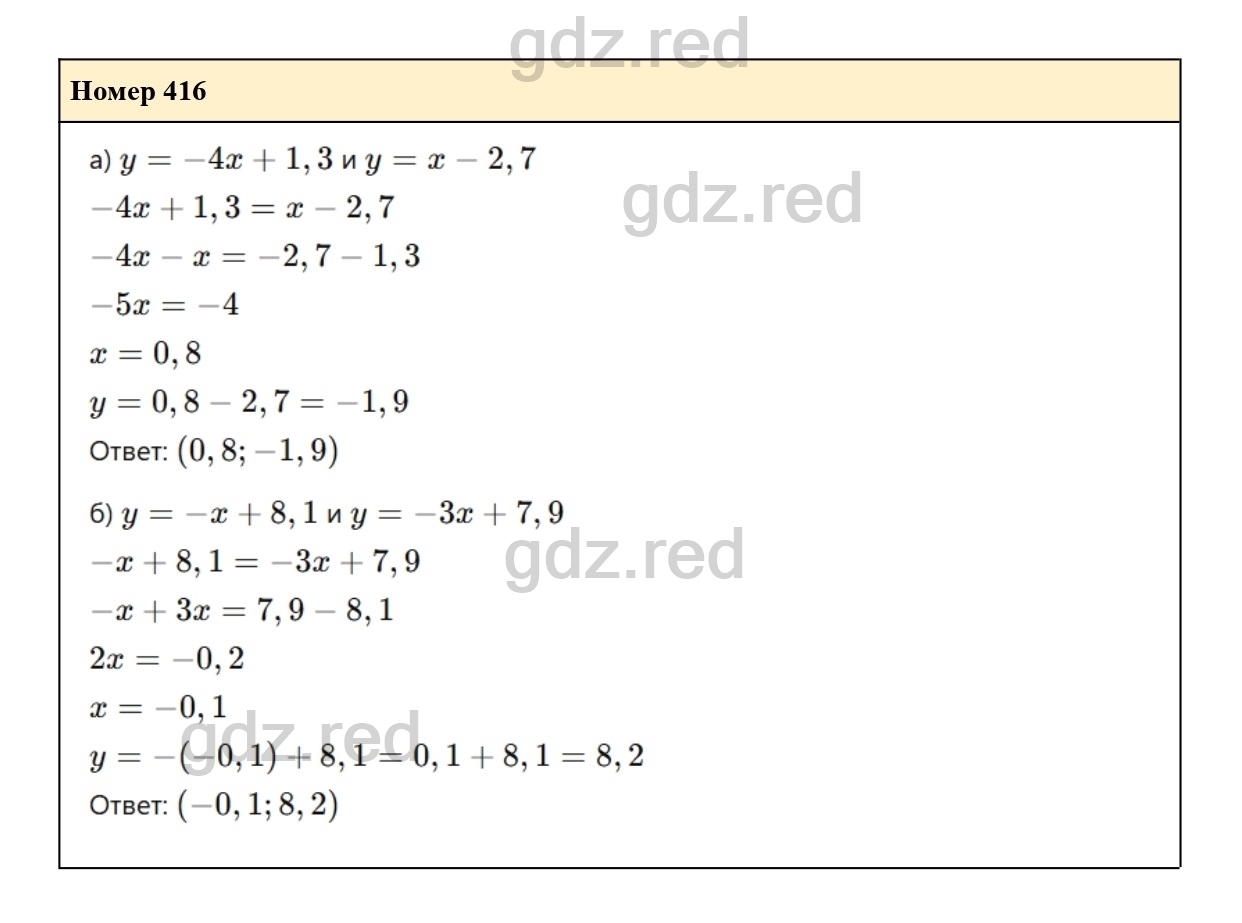 Решение упражнения 416 из учебника по алгебре для 7 класса Макарычева