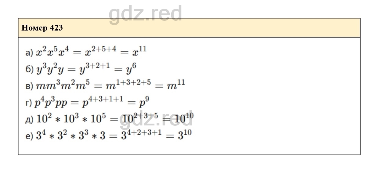 Решение упражнения 423 из учебника по алгебре для 7 класса Макарычева