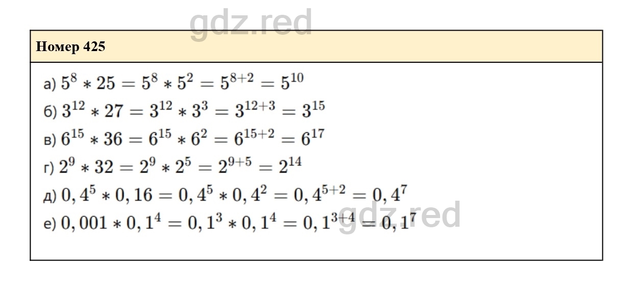 Решение упражнения 425 из учебника по алгебре для 7 класса Макарычева